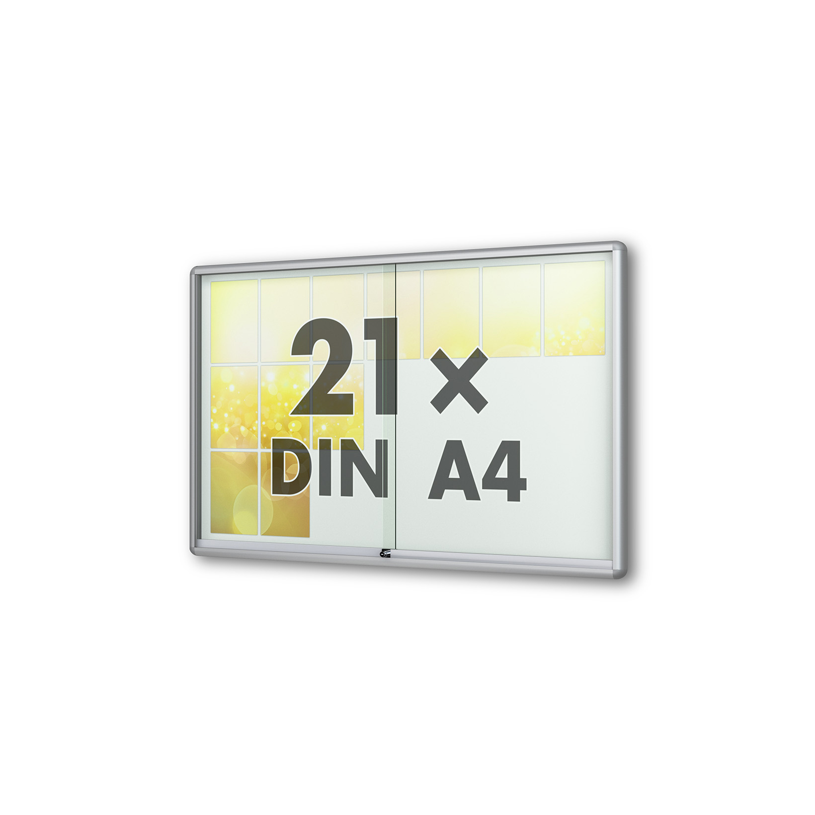 | Merkmale Schaukasten: | Brandschutz, Unfallschutz (gerundete Kanten), Wandmontage, abschliessbar, magnetisch, mit Schiebetüren |