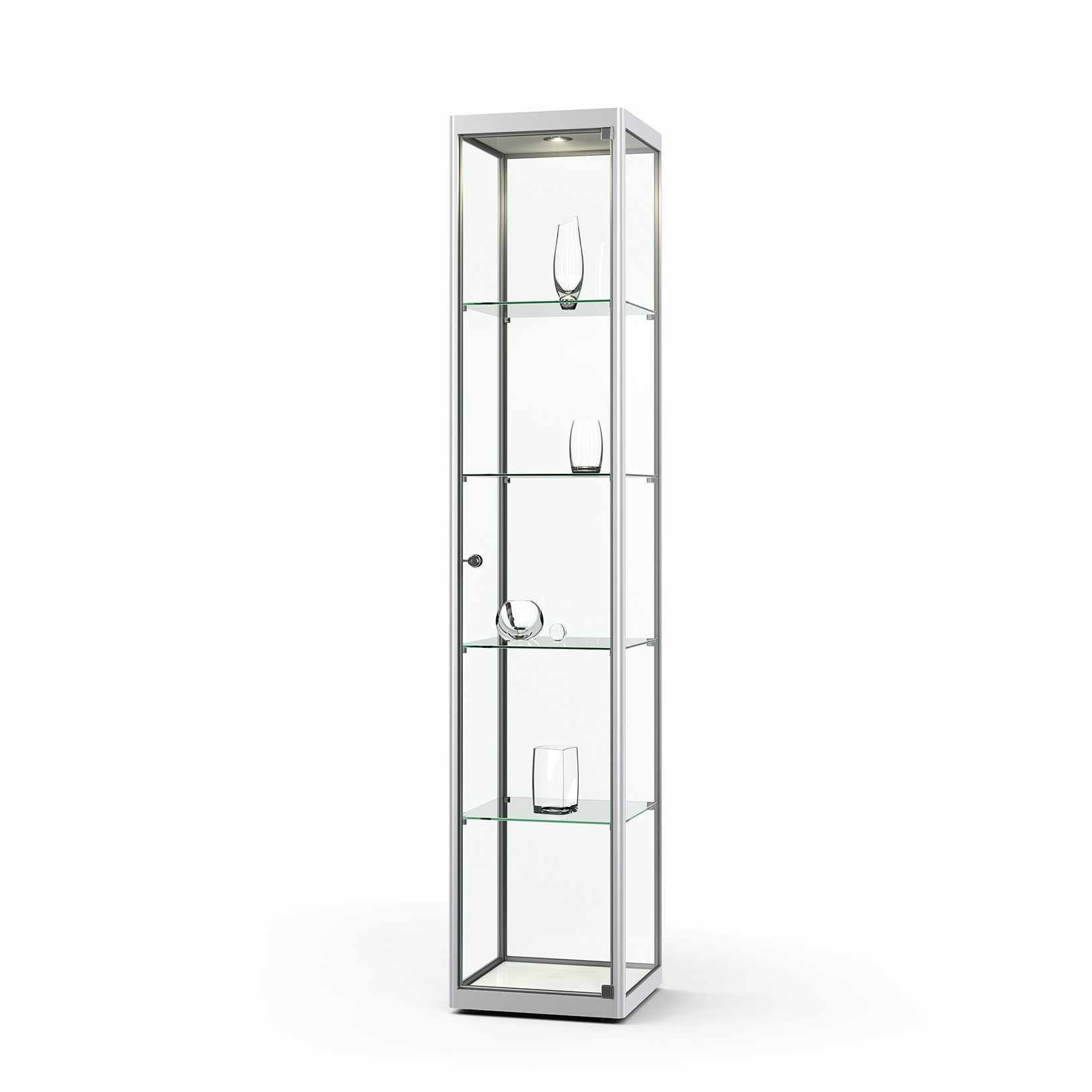 Schlanke Säulenvitrine mit schmaler Profilbreite von nur 22 mm