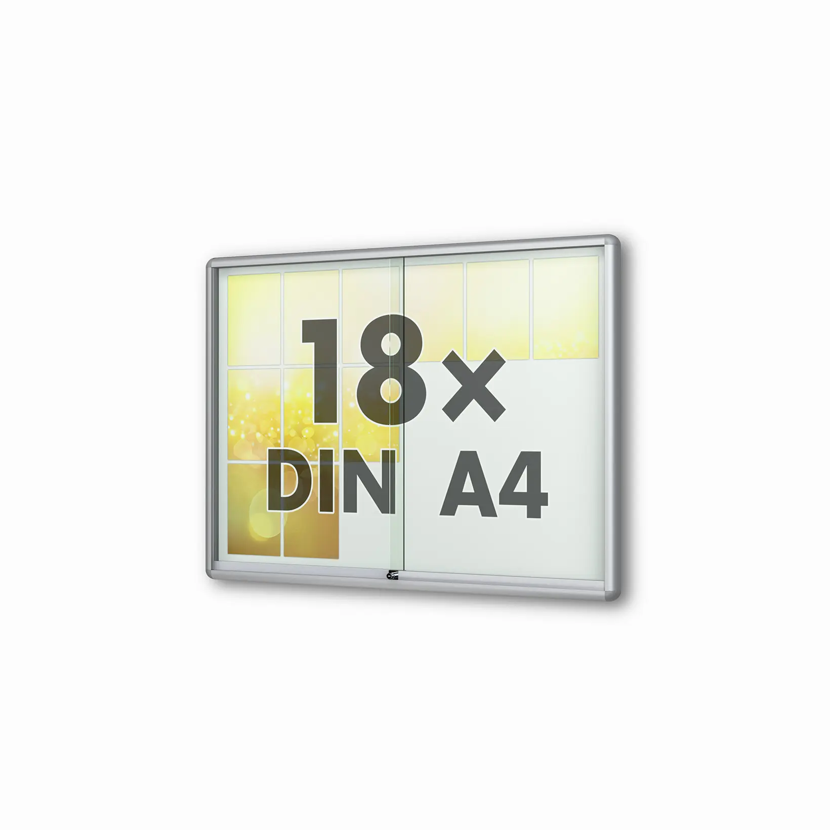 18 x DIN A4 Schaukasten Moveo - "die Schulvitrine" - 50 mm Bautiefe - mit Brandschutzklasse A1 - Rollengelagerte Schiebetüren✓ abschließbar✓ ESG-Sicherheitsglas✓