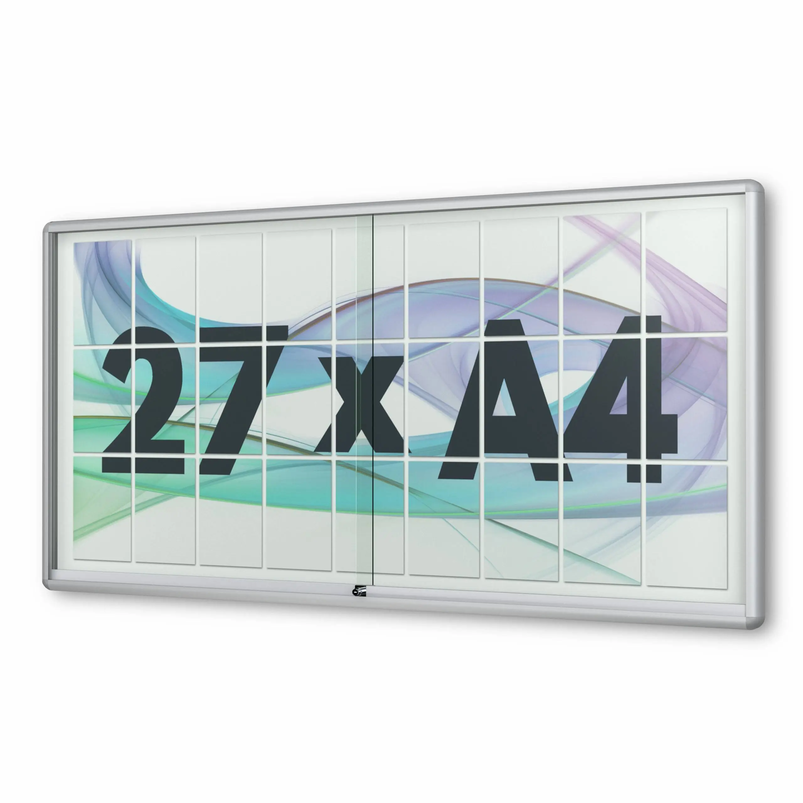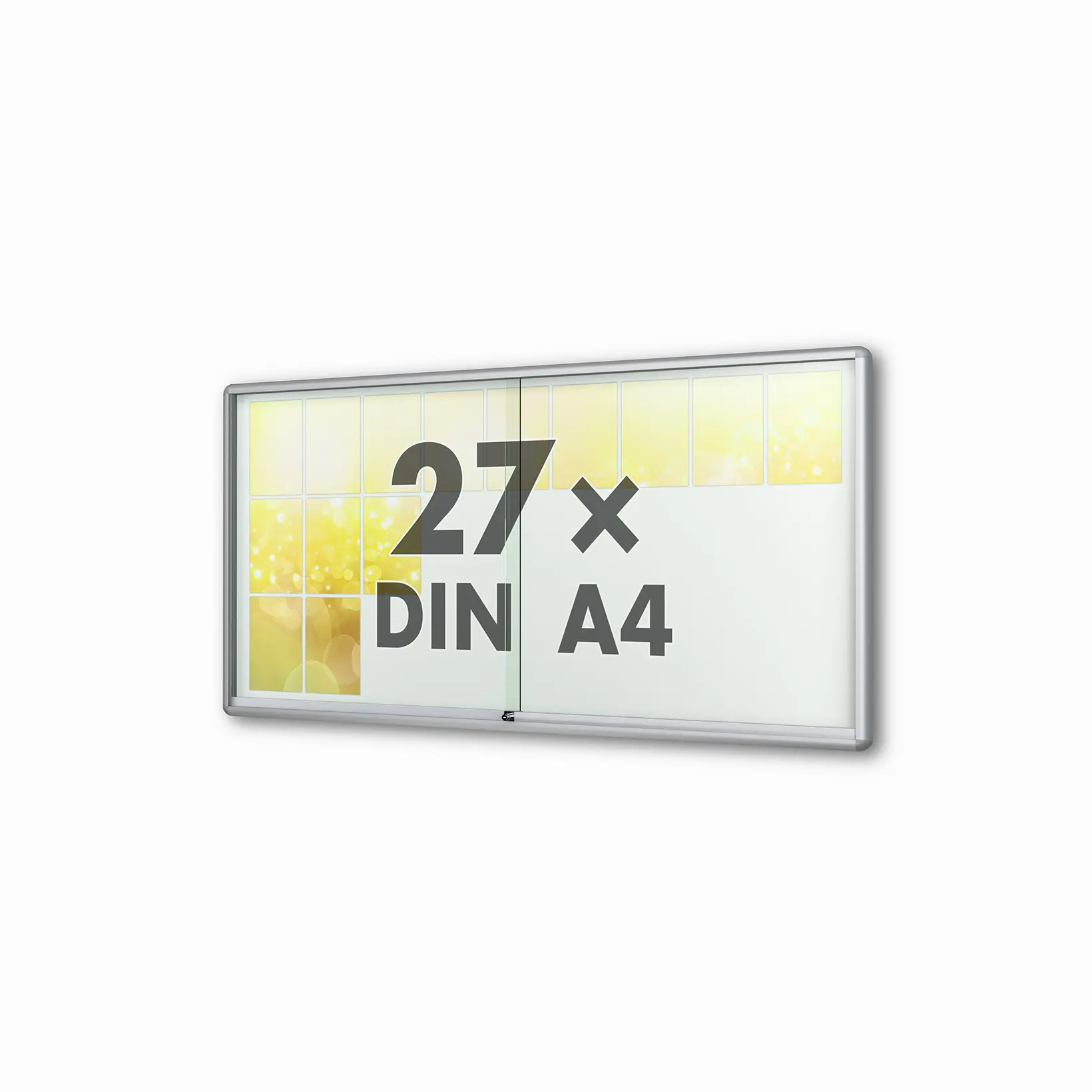 Vitrinen.de ➤ "27 x DIN A4 Schaukasten Moveo - "die Schulvitrine" - 50 mm Bautiefe - mit Brandschutzklasse A1 - Rollengelagerte Schiebetüren✓ abschließbar✓ ESG-Sicherheitsglas✓"